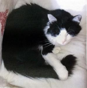 Kater BIPOLINO ist 3 Jahre alt und ein Langhaar-Mix-Kater. Er hat ein schwarz-weißes Fell mit schwarzem Schwanz. Er ist Freigänger und sehr neugierig, aber grundsätzlich Fremden gegenüber etwas scheu.