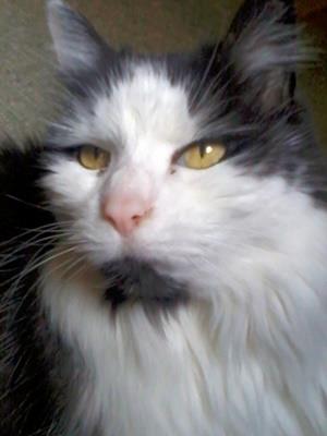 Kater LOUIS ist 6 Jahre alt. Sein Fell ist grau-weiß mit einem schwarzen Punkt auf dem Nasenspiegel. LOUIS ist Freigänger und Fremden gegenüber zutraulich. Er geht auch in Nachbarwohnungen und springt in Autos.