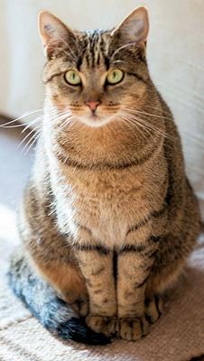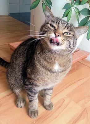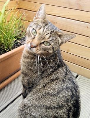 Kater HERMANN ist 15 Monate alt. Sein Fell ist braun getigert mit etwas hellerem Fell um das Maul herum. HERMANN ist Freigänger. Er ist recht zutraulich und springt durchaus auch mal in offenstehende Autos.