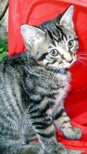 Kater HUMPHRY ist 4 Monate alt. Sein Fell ist grau-schwarz getigert. HUMPHRY durfte schon ins Freie. Er trug bei seinem Verschwinden ein orangefarbenes Halsband mit Telefonnummer auf der Innenseite. HUMPHRY ist nicht kastriert.