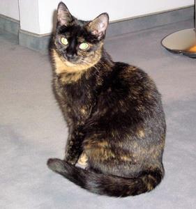 LILY ist 6 Jahre alt und eine Schildpattkatze. Ihre besonderen Merkmale sind ein helles Kehlchen und ein fast nackter Bauch (aufgrund einer Hormonstörung). LILY ist Freigängerin.