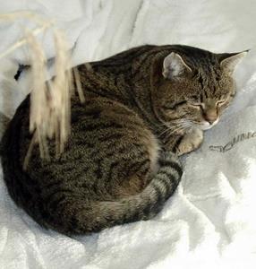 Kater JONAS ist 8 Jahre alt. Er ist dünn und hochbeinig. Sein Fell ist beige-schwarz getigert. Sein rechtes Ohr ist etwas eingerissen. JONAS ist Freigänger. Er leidet an Herzrhytmusstörungen und ist nicht OP-fähig, daher ist er nicht kastriert. Er leidet außerdem an (vermutlich) Rheuma der Hüfte und geht manchmal etwas steif. Er kann sehr schlecht springen, klettert aber nach wie vor gut.