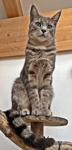 MILO ist 1 1/2 Jahre alt. Er hat ein mittellanges grau getigertes Fell mit einem kleinen weißen Brustfleck, dunkler Nasenspitz und hellerem Kinn. MILO ist tagsüber Freigänger, aber normalerweise nie länger als 3 Stunden in der näheren Umgebung unterwegs. Bisher war er nie nachts draußen. MILO ist zutraulich und mag Hunde.