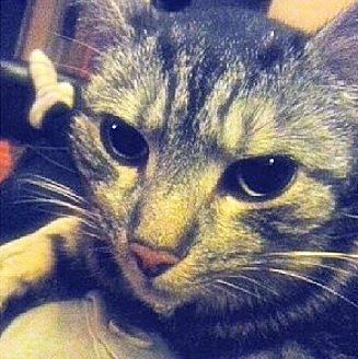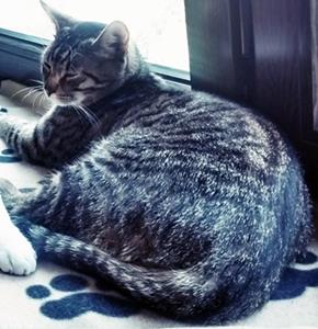 Kater MORITZ ist 12 Jahre alt. Sein Fell ist braun-schwarz getigert. Er hat ein weißes Kinn und einen braunen Bauch (derzeit ist das Fell am Bauch bei den Hinterbeinen etwas kürzer, da er vor ein paar Wochen dort geschoren wurde). Er hat schwarze und weiße Schnurrhaare sowie zwei Kerben im linken Ohr. Er ist Freigänger und extrem zutraulich.