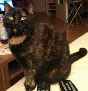 FINA ist 6 Jahre alt und zierlich. Ihr Fell ist braun/schwarz (schildpatt) mit einem helleren "Lätzchen" und einem weißen Schnurrhaar auf der linken Seite. Sie hat jeweils einen hellbraunen Fleck über dem linken Auge und rechts an der Unterlippe. FINA hat aufgrund eines Unfalles einen kürzeren Schwanz. Sie darf ab und zu ins Freie, ist aber eher eine Wohnungskatze. Sie ist sehr schüchtern und reagiert am ehesten auf ihren Namen wenn er in etwas höherer Tonlage ausgesprochen wird.