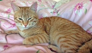 Kater TIGER ist 2 Jahre alt und groß. Sein Fell ist hellrot getigert. Besonderes Merkmal: Seine geknickte Schwanzspitze. Er ist Freigänger und Fremden gegenüber ruhig, lieb und zutraulich.