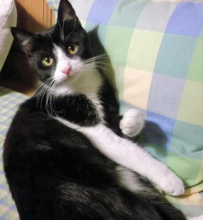 SAMMY ist 3,5 Jahre alt. Er hat ein schwarz-weißes Fell. Sein Bauch und Kinn sind überwiegend weiß, bis auf einen schwarzen Fleck am Kinn. Sein Näschen ist rosa, auch die Ohren größtenteils. Die Pfötchen sind rosa mit schwarzen Flecken. Er ist groß und schlank. SAMMY ist Freigänger und hört auf seinen Namen. Er ist zutraulich, frech und faucht schnell.