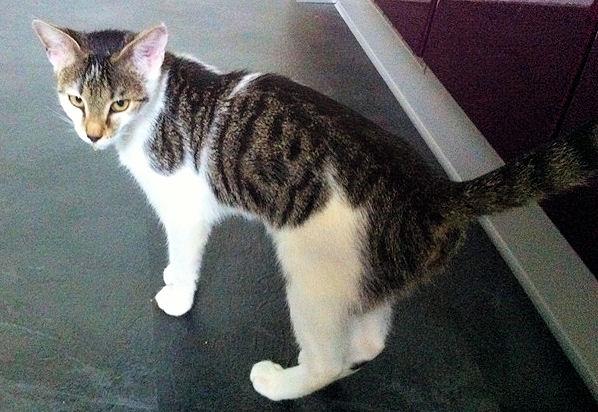 Kater SWEETIE ist ca. 2 Jahre alt. Sein Fell ist weiß mit grauen Flecken (Kopf, Seiten). Er hat einen dunkel getigerten Schwanz und gelbe Augen. SWEETIE ist Freigänger. Er ist ziemlich ängstlich gegenüber fremden Katzen.