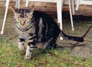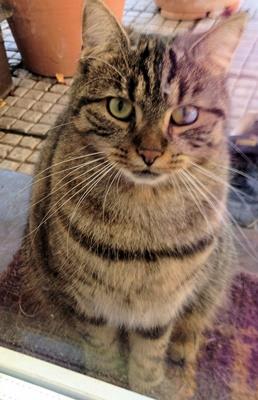 Kater DODO ist 12 Jahre alt. Sein Fell ist dunkel getigert. Er ist Freigänger. Besonderheit: Er frisst kein übliches Katzenfeuchtfutter.