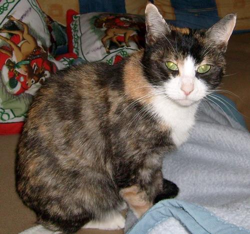 PUTZI ist 14 Jahre alt, klein und schlank. Ihr Fell ist dunkel mit vielen hellbraunen Flecken. Brust, Kinn und Schnauze sind weiß. Die Vorderpfoten sind dunkel, die Hinterpfoten sind weiß. An der linken Hinterpfote hat sie eine kleine aber sichtbare Stelle an der kein Fell ist. Sie hat noch alle Zähne. Sie ist eine reine Wohnungskatze und kennt sich im Freien nicht aus. Sie ist sehr zutraulich.