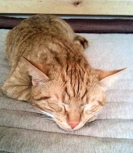 Kater DSCHI ist 5 Jahre alt. Er hat ein braun/grau getigertes Fell. Auffallendes Kennzeichen: Er hat einen Stummelschwanz (d.h. sein Schwanz ist nur ca. 10 cm lang). DSCHI ist Freigänger.