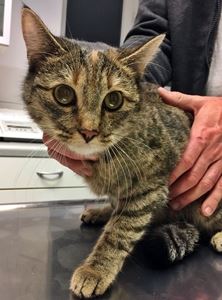 Am Samstag, den 2. April 2016 wurde in München-Fasanerie (Trollblumenstraße) eine stark abgemagerte, schwache Katze gefunden, grau/schildpattfarben getigert mit heller Brust, weißen Pfoten und bräunlichem Fleck auf der Stirn. Die Katze wurde in tierärztliche Obhut gegeben und musste leider sofort aufgrund akuten Nierenversagens von ihren Leiden erlöst werden. Wir suchen nun die Besitzer, die die Katze offensichtlich hatte: Sie hatte am rechten Vorderbein eine rasierte Stelle (möglicherweise von einer Blutabnahme); lt. medizinischem Befund wurden jedoch keine Medikamente verabreicht. Kein Chip, keine Tätowierung. R.I.P. arme Mieze.