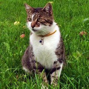 Kater BALU ist 4,5 Jahre alt. Er hat ein schwarz-braun getigertes Fell mit weißer Brust und Bauch sowie weißen Pfoten. Er ist Freigänger und sehr zutraulich.