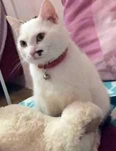 Kater MERLIN ist ca. 1 Jahr alt. Er hat ein komplett weißes Fell und gelbe Augen. Er ist normalerweise Freigänger und Fremden gegenüber sehr zutraulich.