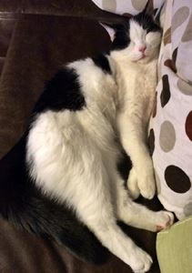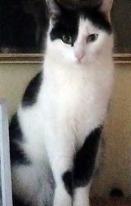 Kater PIANO ist 4 Jahre alt. Er hat ein schwarz-weißes Fell mit weißen Pfoten. Er hat auf seinem Rücken einen schwarzen Fleck in Herzform. PIANO ist Freigänger und Fremden gegenüber eher zutraulich.