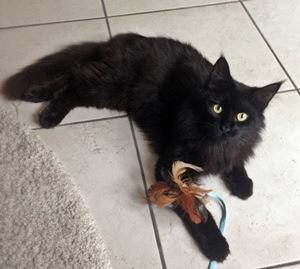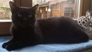 Kater BLACKY ist 1 Jahr alt. Sein Fell ist komplett schwarz. BLACKY ist Freigänger und Fremden gegenüber zutraulich.