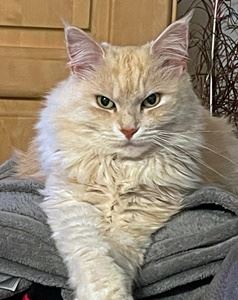 ROXXY ist 3 Jahre alt und ein BKH/Maine-Coon-Mix. Sie hat ein längeres creme farbenes Fell, Pinselohren und einen helleren Schnauzenbereich. ROXXY ist Freigängerin und kam bislang immer abends nach Hause. ROXXY ist neugierig aber nicht sehr zutraulich fremden Personen gegenüber.