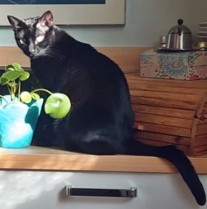 CACAU ist 2 Jahre alt und relativ klein. Sie hat ein komplett schwarzes Fell und gelbe Augen. Auffallend ist ihr etwas seltsamer Gang (sie drückt ihren Rücken nach unten) und rollt den Schwanz. CACAU ist Freigängerin mit sehr kleinem Radius und ist fremden Personen gegenüber sehr schüchtern.