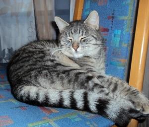 Kater TIGER ist 1 Jahre alt. Sein Fell ist braun getigert, am Bauch und Kinn ist er heller. Er hat einen getigerten Schwanz mit schwarzer Schwanzspitze. TIGER ist Freigänger und Fremden gegenüber sehr zutraulich. Tiger ist jetzt schon älter als auf dem Foto abgebildet.