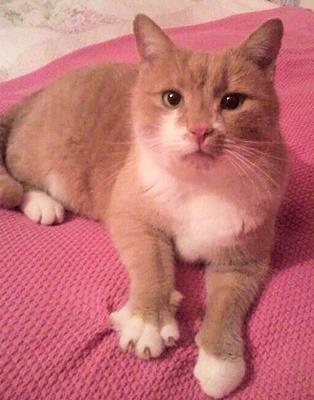Kater LEO ist 6 Jahre alt. Sein Fell ist rot - leicht getigert - mit weißer Brust und weißen Pfoten. Er ist Freigänger, zutraulich und an Kinder gewöhnt.