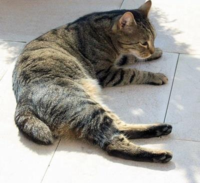 Kater DSCHI ist 5 Jahre alt. Er hat ein braun/grau getigertes Fell. Auffallendes Kennzeichen: Er hat einen Stummelschwanz (d.h. sein Schwanz ist nur ca. 10 cm lang). DSCHI ist Freigänger.