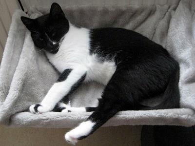 FRITZ ist ca. 2 Jahre alt. Er hat ein schwarz-weißes Fell, vier weiße Pfoten, eine rosa Nase und rosa Tatzen. Er ist Freigänger.