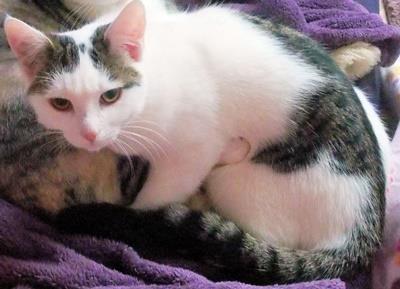 LILLY ist 6 Jahre alt. Ihre Fellgrundfarbe ist weiß mit grau-braun getigerten Stellen. Als Erkennungsmerkmal hat sie an der hinteren rechten Pfote eine kahle Stelle an der kein Fell mehr wächst. LILLY ist Freigängerin. Sie ist erst ein Jahr in der Gegend und könnte möglicherweise in ihre alte Heimat Sendling-Westpark unterwegs sein.