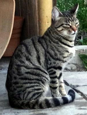 Kater HERMANN ist 15 Monate alt. Sein Fell ist braun getigert mit etwas hellerem Fell um das Maul herum. HERMANN ist Freigänger. Er ist recht zutraulich und springt durchaus auch mal in offenstehende Autos.