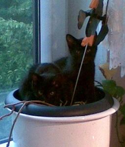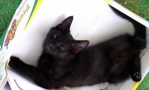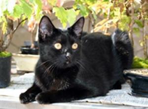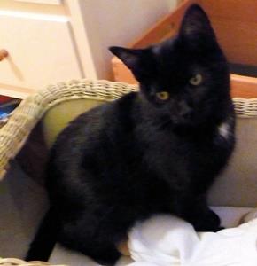 Kater BLACKY ist 6,5 Monate alt. Er hat ein schwarzes Fell mit weißem Brustfleck. BLACKY ist Freigänger.