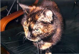 RÖSCHEN ist eine Schildpattkatze und bereits 21 Jahre alt. RÖSCHEN ist schwerhörig und dadurch orientierungslos.