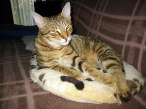 Kater BAMBAM ist ca. 4 Jahre alt. Er ist braun-schwarz getigert, hat eine schwarze Nase und grüne Augen. Er ist recht groß. BAMBAM ist Freigänger. Er ist sehr neugierig, zutraulich und normalerweise pünktlich zuhause.