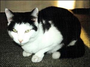 Kater CHARLY ist 7 Jahre alt. Er hat ein weißes Fell mit markanter schwarzer Zeichnung und schwarzen Flecken. Er hat vier weiße Pfoten und einen schwarzen Schwanz. CHARLY ist ein reiner Wohnungskater.