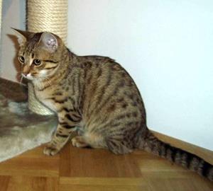 Kater SEPPI ist 9 Monate alt. Sein Fell ist braun-schwarz getigert. SEPPI ist sehr verspielt und neugierig.