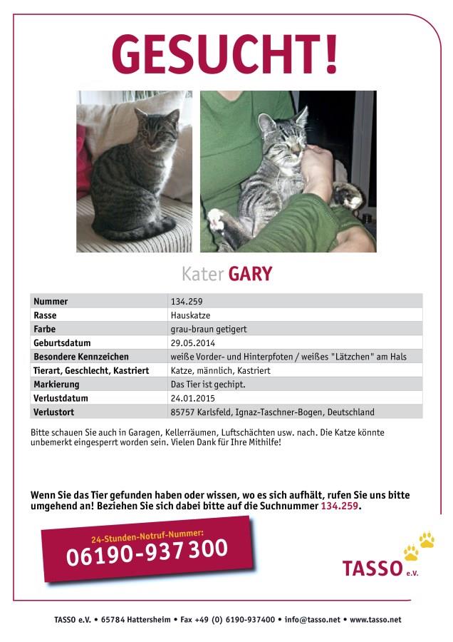 Kater GARY - vermisst seit 24.01.2015 in Karlsfeld