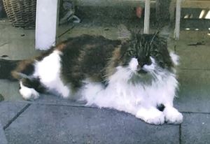 Kater Moritz ist ca. 7 Jahre alt und ein Langhaarkater. Sein Fell ist am Kopf, Rücken und Schwanz braun/schwarz, Brust, Bauch und Beine sind weiß. MORITZ hat eine sehr auffällige schwarz-weiße Zeichnung im Gesicht. Er ist Freigänger. Möglicherweise macht er sich auf den Heimweg von Weil nach Moorenweis.