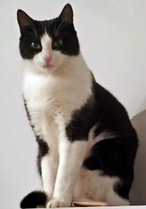 Kater SIMBA ist ca. 1 Jahr alt. Er hat ein schwarz-weißes Fell mit weißer Brust und weißen Pfoten. Auffallend sind seine schwarze Nasenspitze und sein schwarzes Kinn. SIMBA ist Freigänger. Er hat im Sommer öfters draußen übernachtet, war aber morgens immer zuverlässig vor der Tür. Er ist Fremden gegenüber eher scheu.