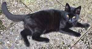 Kater WALLACE ist 1,5 Jahre alt. Er hat ein schwarzes Fell (im Sonnenlicht ist eine Tiger-Zeichnung erkennbar). WALLACE ist Freigänger und Fremden gegenüber zutraulich. Er trug zum Zeitpunkt seines Verschwindens ein hellblaues Halsband ohne Glöckchen.