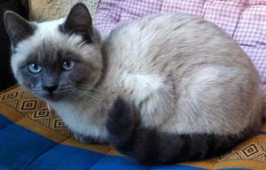 Kater GAARA ist ein Siam-Kater und 1 Jahr alt. Er hat ein beige/weißes Fell mit dunklem Gesicht und Ohren, dunklen Pfoten und dunklem Schwanz. Er hat blaue Augen und einen leichten Silberblick. GAARA ist Freigänger, aber nie länger als 6 Stunden am Stück weg. Er ist fremden Personen gegenüber sehr zutraulich.