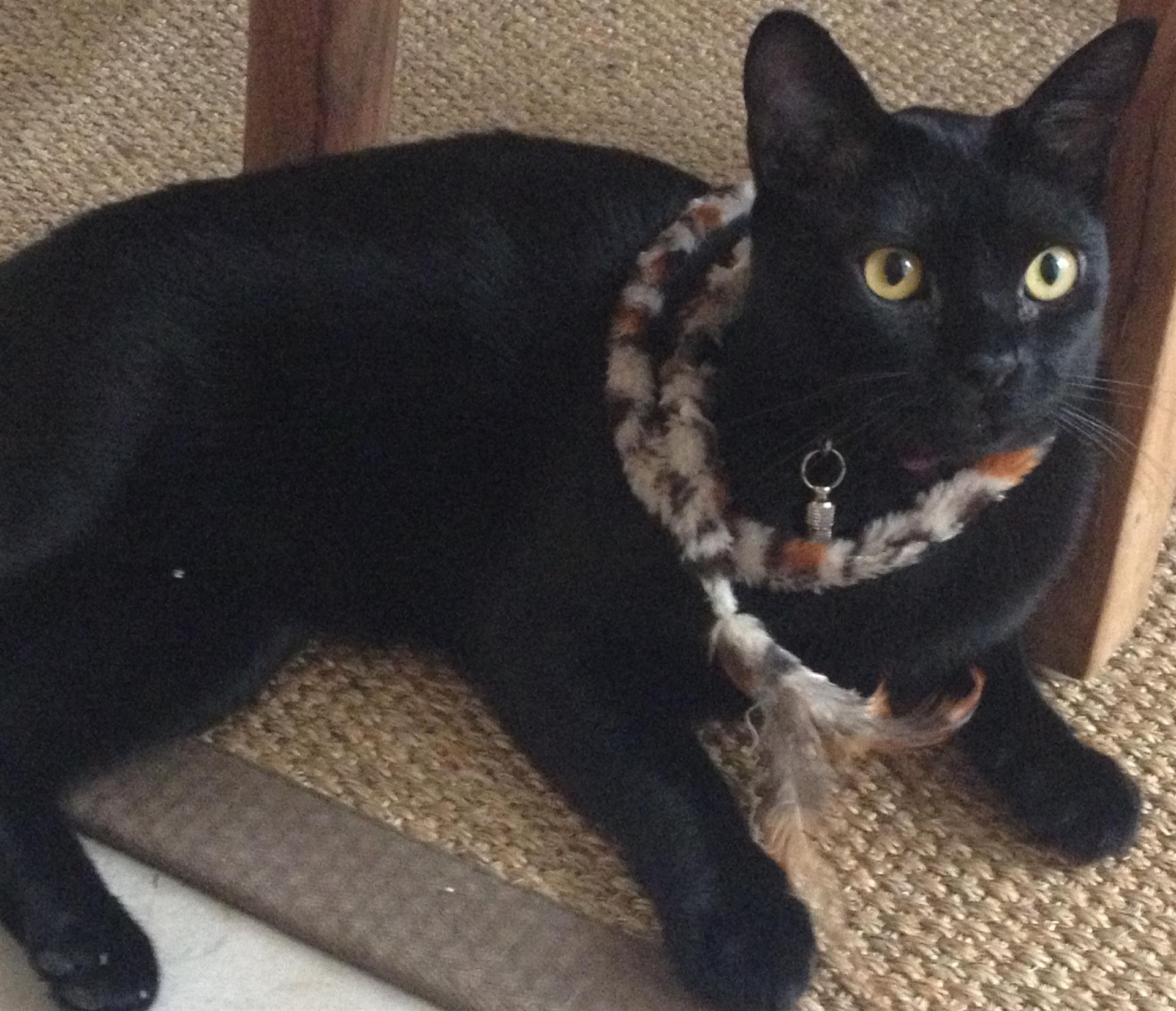 Kater LOUIS ist ca. 2 Jahre alt. Sein Fell ist komplett schwarz, seine Augen sind goldfarbene. LOUIS ist Freigänger. Er trägt ein lila Halsband mit kleinem Adreßanhänger. LOUIS ist sehr neugierig, klettert gerne auf alle Bäume und Dächer, redet gern und ist sehr verschmust und zugleich schreckhaft im ersten Moment.