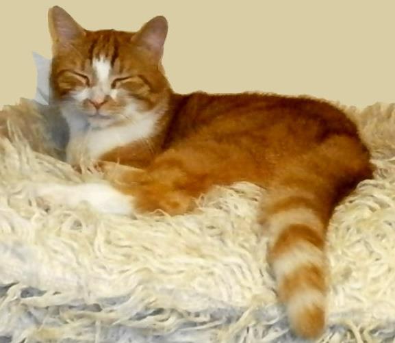 Kater LEO ist 6 Jahre alt. Sein Fell ist rot - leicht getigert - mit weißer Brust und weißen Pfoten. Er ist Freigänger, zutraulich und an Kinder gewöhnt.