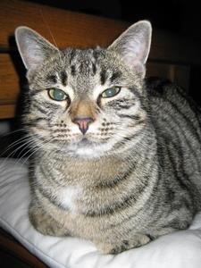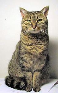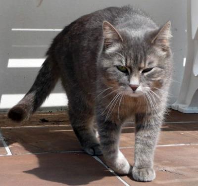 Kater DSCHI ist 5 Jahre alt. Er hat ein braun/grau getigertes Fell. Auffallendes Kennzeichen: Er hat einen Stummelschwanz (d.h. sein Schwanz ist nur ca. 10 cm lang). DSCHI ist Freigänger.