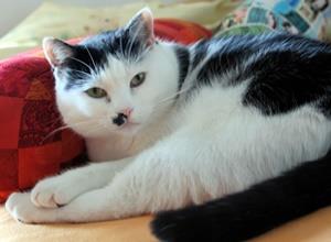 Kater PATCH ist 5 Jahre alt. Er hat ein schwarz weißes Fell mit schwarzen Flecken auf dem Rücken sowie einen langen, schwarzen Schwanz mit weißer Spitze. PATCH ist Freigänger und sehr änglichst. Er wurde Ende Juni evtl. am Domberg in Freising gesehen.