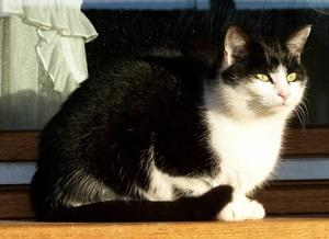 Kater MICKI ist 2 Jahre alt. Er hat ein schwarz-weißes Fell. MICKI ist scheu. Er scharrt gerne mit den Vorderpfoten an Fenster und Glastüren, wenn er rein oder raus will.