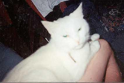 SCHNEEWEISCHEN ist 14 Jahre alt. Sie ist eine schneeweiße, sterilisierte Kätzin. Sie ist schlank und hat gelbe Augen. SCHNEEWEISCHEN trug bei ihrem Verschwinden ein lila Halsband mit Glocke.