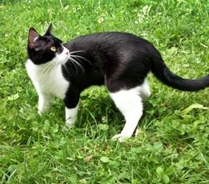 Kater PIANO ist 4 Jahre alt. Er hat ein schwarz-weißes Fell mit weißen Pfoten. Er hat auf seinem Rücken einen schwarzen Fleck in Herzform. PIANO ist Freigänger und Fremden gegenüber eher zutraulich.