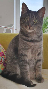 Kater PAUL ist 9 Jahre alt. Er hat ein braun getigertes Fell mit weißem Schnauzenbereich. PAUL ist Freigänger. Er ist sehr neugierig, aber auch scheu.